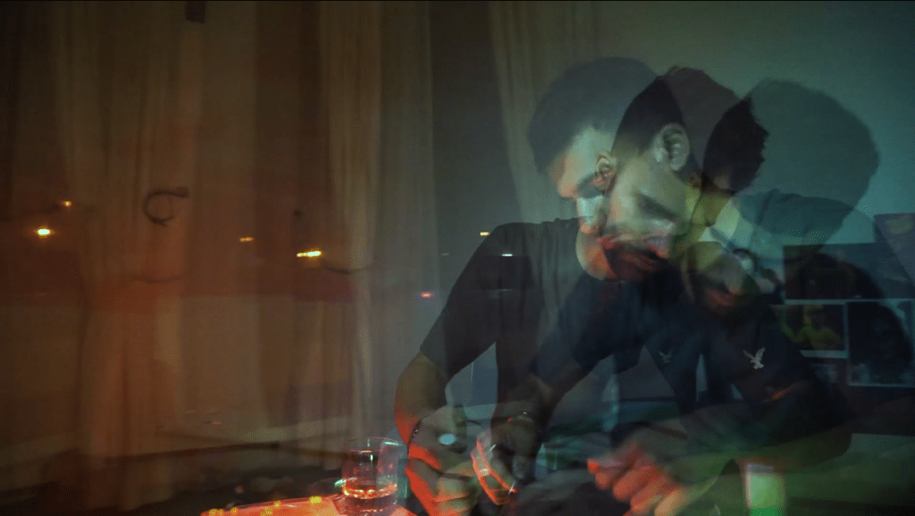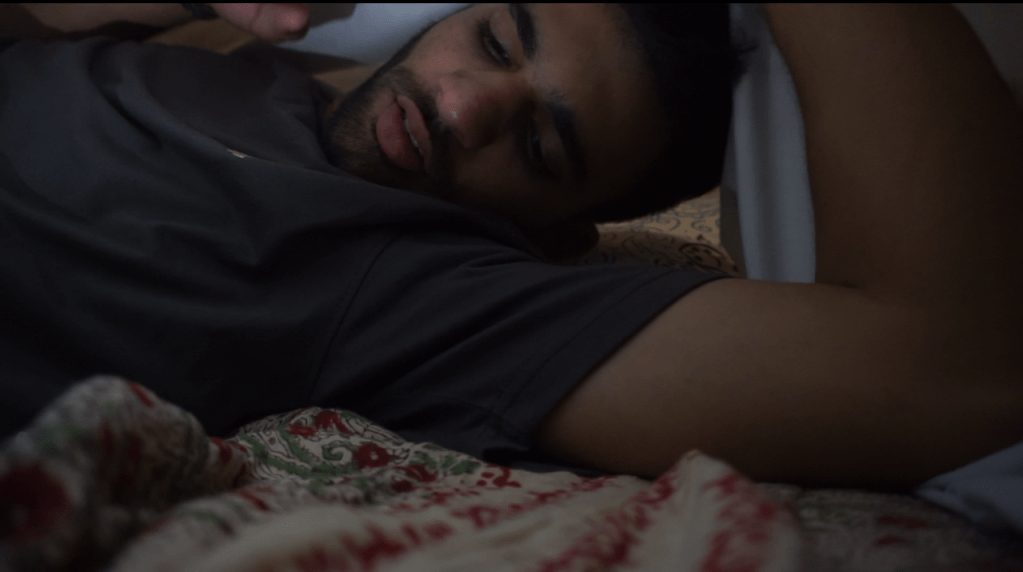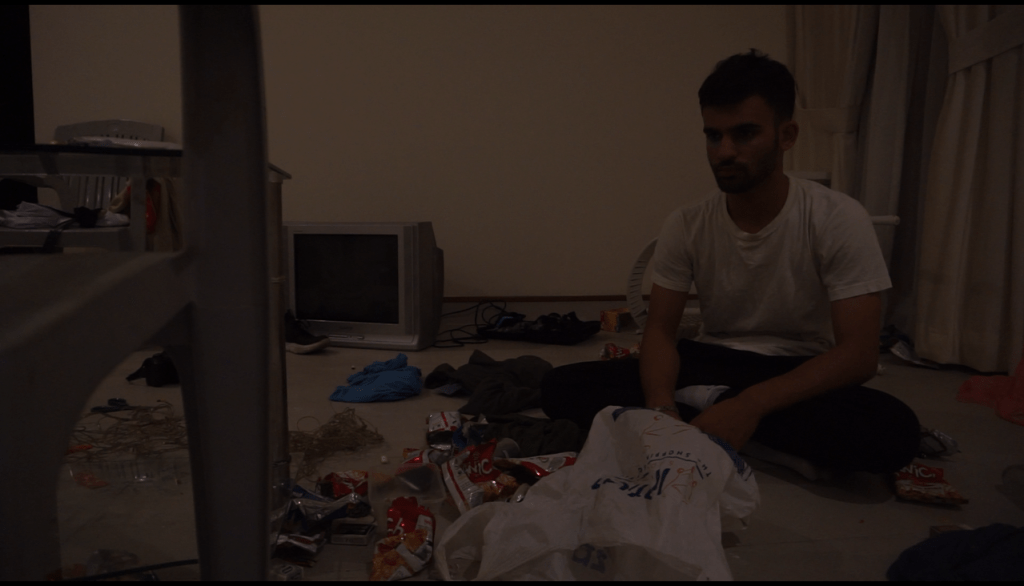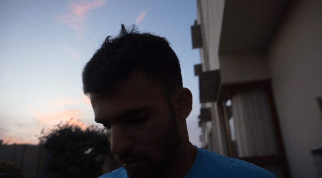 I hold no proficiency in the field of make up art but I had to try my best. I had borrowed some foundation and eye shadow colours from my mother. I combined purple and blue eye shadows and applied them under my actor’s eyes. The foundation was used on his entire face so he looks good for the camera and his skin tones are evened out. For the costumes however, I chose to go simple. I gave him plain coloured tee-shirts and asked him to change it to a different one every few scenes later so the video looks like its a journey of a character and not a one-day story.