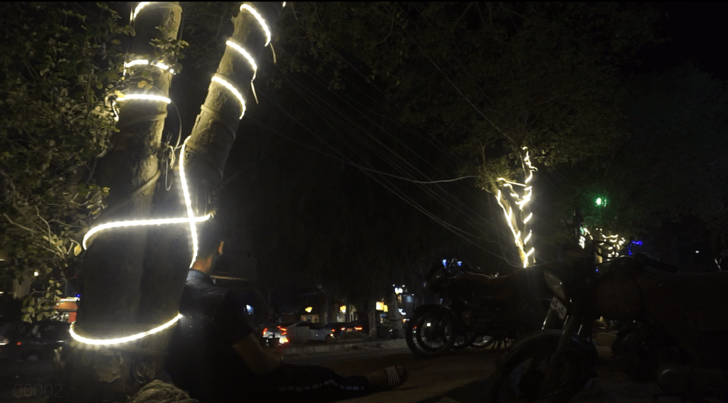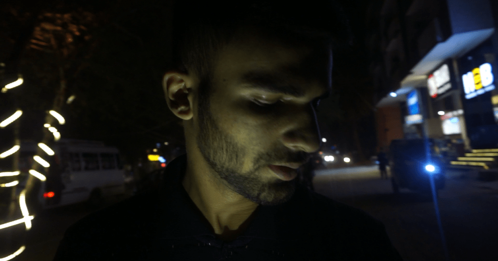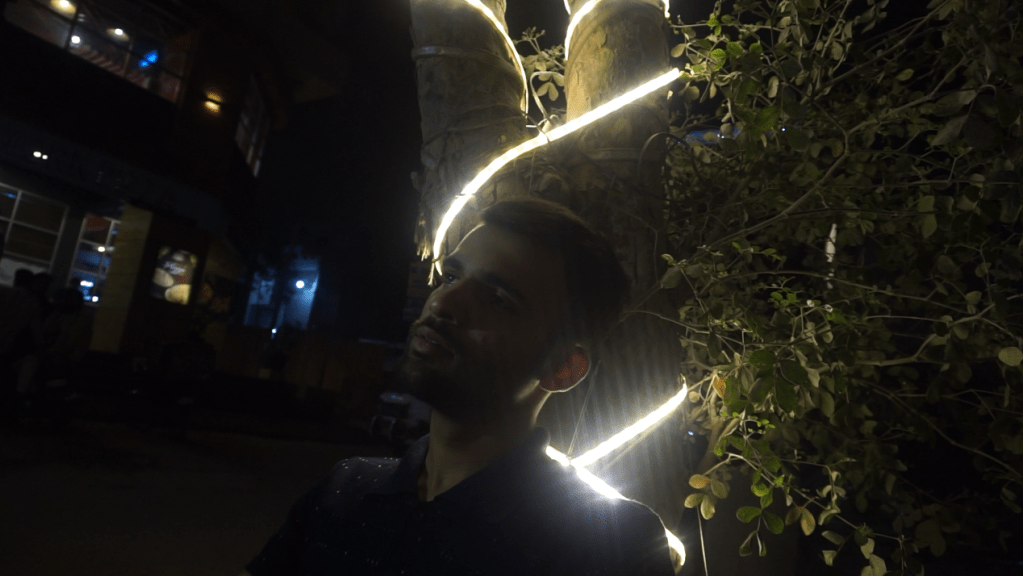 We worked with ambient lights as much as we could, and used the coloured light bulbs for the scenes in which I wanted to have a neon themed look. We waited for the sunset and then did the scenes with the coloured lights. However, there were some scenes where I wanted a normal light but since we didn’t have them after sunset, Ashar and I used our phones’ flashlights on brightest settings. I put some tissue paper on top of the lights to soften them. That is something I had to improvise on shoot.